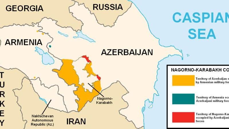 Armenia e Azerbaigian caratterizzati da confini non pienamente corrispondenti alla distribuzione delle rispettive popolazioni vedono localizzata la propria disputa nella regione contesa del Nagorno-Karabakh.